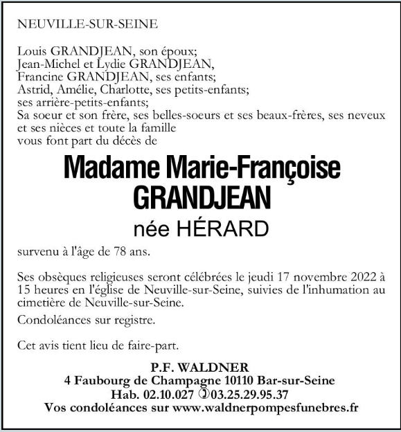 Madame Marie-Françoise GRANDJEAN née HÉRARD