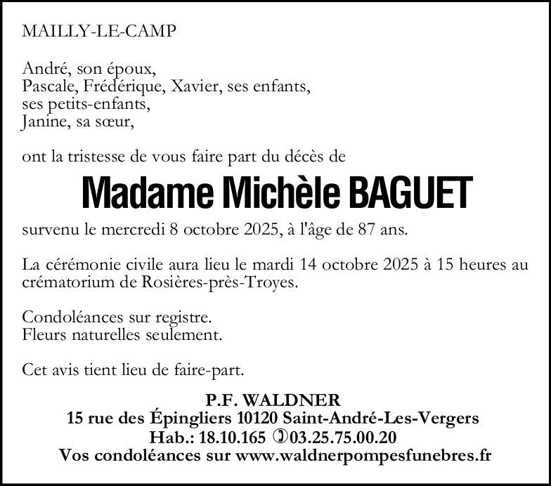 Décédée à Troyes (10000, France) le mercredi 8 octobre 2025 à l'âge de 87 ans