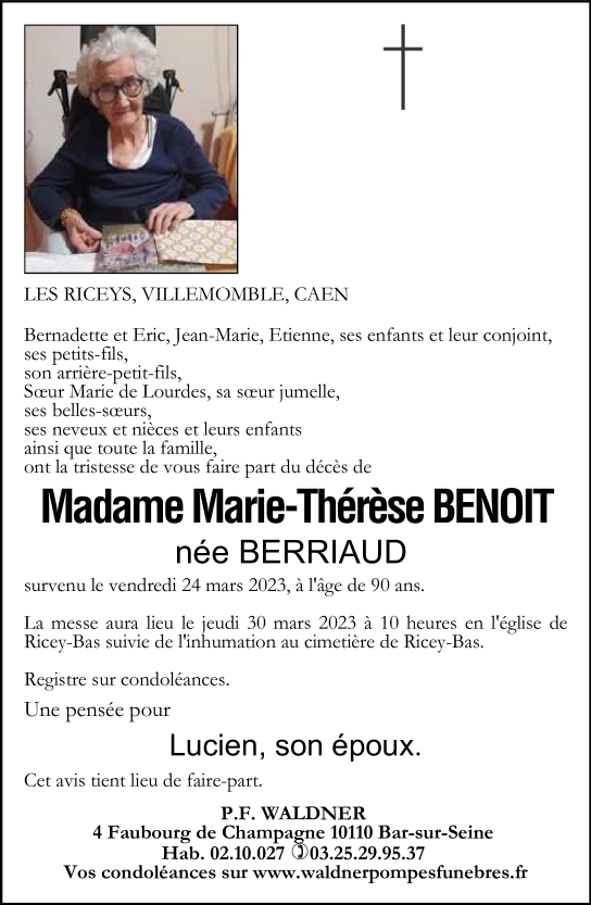 Madame Marie-Thérèse BENOIT née BERRIAUD