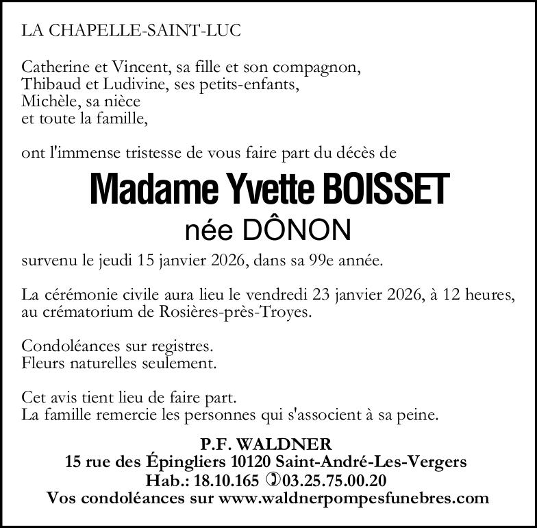 Madame Yvette BOISSET née DÔNON