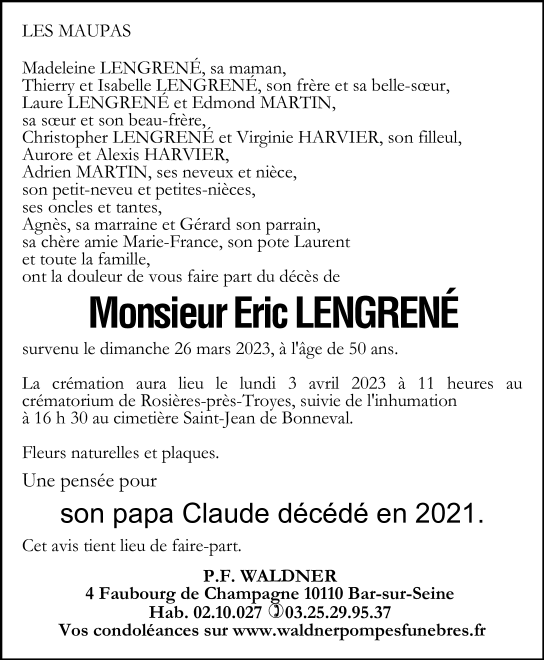 Décédé à Troyes (10000, France) le dimanche 26 mars 2023 à l'âge de 50 ans