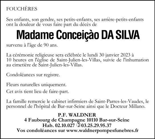 Décédée à Bar-sur-Seine (10110, France) le mercredi 25 janvier 2023 à l'âge de 90 ans