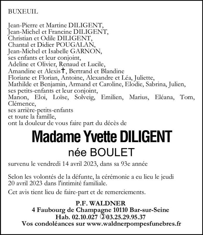 Décédée à Bar-sur-Seine (10110, France) le vendredi 14 avril 2023 à l'âge de 92 ans