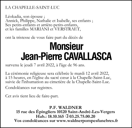 Décédé à Troyes (10000, France) le jeudi 7 avril 2022 à l'âge de 96 ans