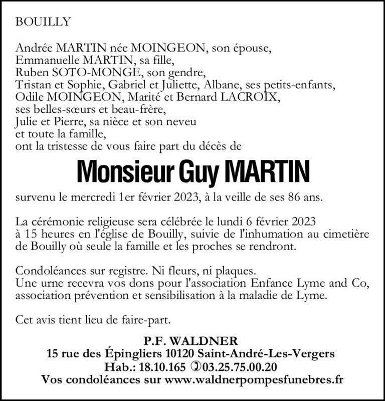 Décédé à Troyes (10000, France) le mercredi 1 février 2023 à l'âge de 85 ans