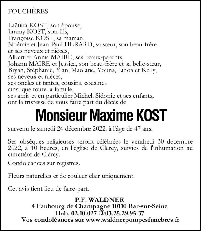 Décédé à Fouchères (10260, France) le samedi 24 décembre 2022 à l'âge de 47 ans