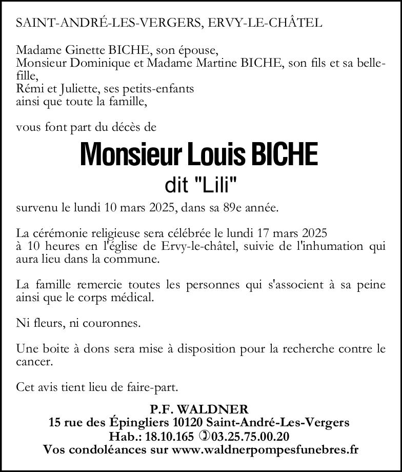 Né à Ervy-le-Châtel (10130, France) le vendredi 8 janvier 1937