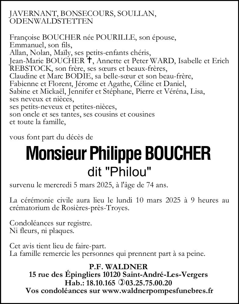 Décédé à Javernant (10320, France) le mercredi 5 mars 2025 à l'âge de 74 ans