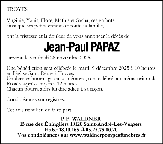 Décédé à Troyes (10000, France) le vendredi 28 novembre 2025 à l'âge de 77 ans