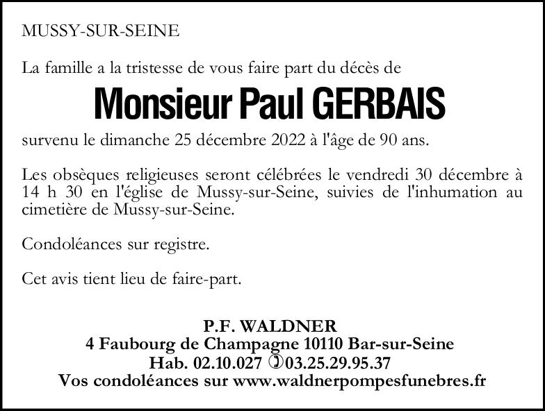 Décédé à Bar-sur-Seine (10110, France) le dimanche 25 décembre 2022 à l'âge de 90 ans