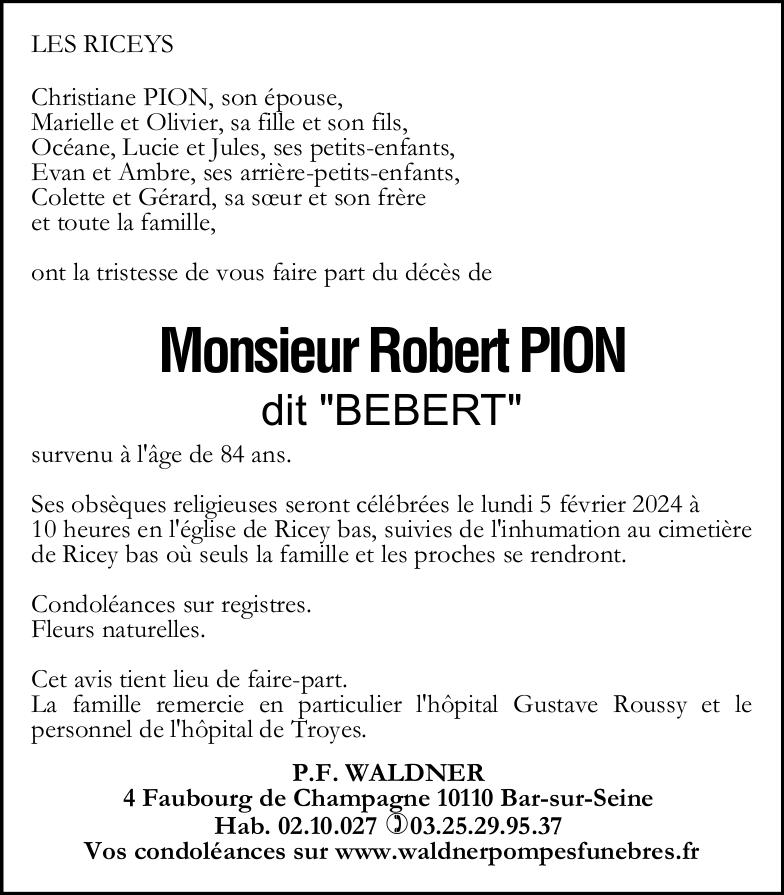 Décédé à Troyes (10000, France) le dimanche 28 janvier 2024 à l'âge de 84 ans